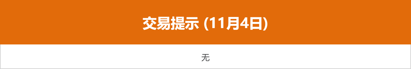 国内期货:11月3日,国内商品期货收盘涨跌不一,菜粕涨超4%,原油、LU燃油、纸浆、铝合金、烧碱涨超1%。跌幅方面,BR橡胶跌超3%,纯碱、甲醇跌超2%,铁矿石、集运欧线、棕榈油、焦炭跌超1%。