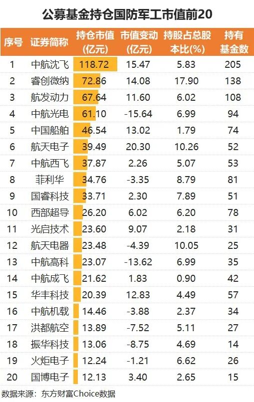 公募重仓军工股TOP20