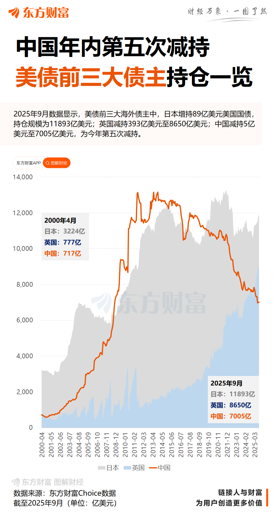 英国9月减持393亿美元美国国债至8650亿美元,持仓规模保持第二。