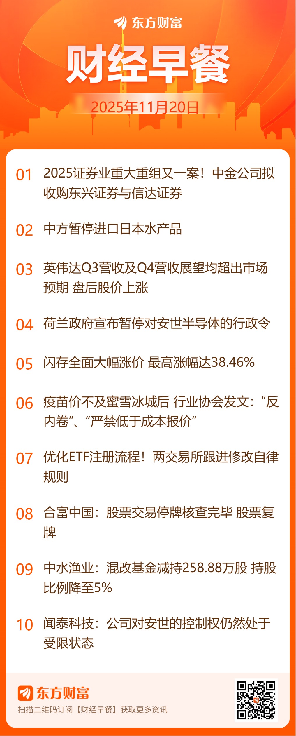 中金公司11月19日公告,公司与东兴证券、信达证券正在筹划由中金公司通过换股方式吸收合并东兴证券、信达证券。为保证公平信息披露,维护投资者利益,避免造成公司股价异常波动,公司A股股票将于2025年11月20日开市时起停牌,预计停牌时间不超过25个交易日。本次重组有助于加快建设一流投资银行,支持金融市场改革与证券行业高质发展。