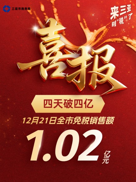 而据12月18日海南自贸港正式启动全岛封关运作以来,三亚市商务局已经连续4天发布“喜报”,12月18日至21日,三亚全市的免税销售额分别为1.18亿元、1.05亿元、1.08亿元和1.02亿元,连续4天破亿。其中,12月19日三亚全市全年累计销售额突破200亿元。