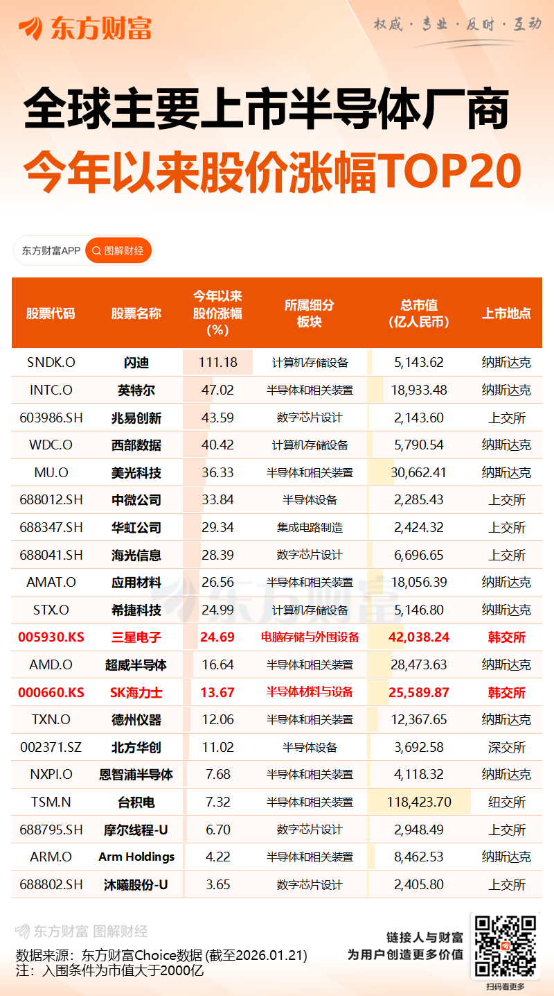 据最新数据,今年前20天,号称全球经济“金丝雀”的韩国出口半导体总金额达107.3亿美元(约合人民币747亿元),同比大幅增长超70%。这预示着,在AI(人工智能)浪潮下,全球半导体需求仍非常强劲。受此影响,存储芯片巨头三星电子股价直线拉升,21日盘中一度大涨超3%。